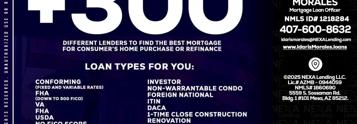Hi, my name is Idaris Morales. I’m a Loan Officer with NEXA Lending LLC., offering personalized mortgage solutions, fast customized quotes, great rates and service with integrity.