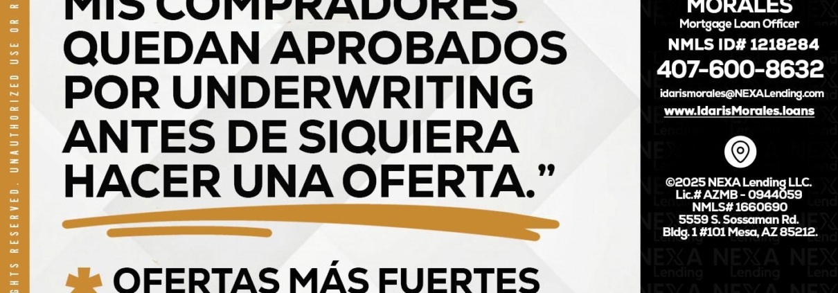 Hi, my name is Idaris Morales. I’m a Loan Officer with NEXA Lending LLC., offering personalized mortgage solutions, fast customized quotes, great rates and service with integrity.