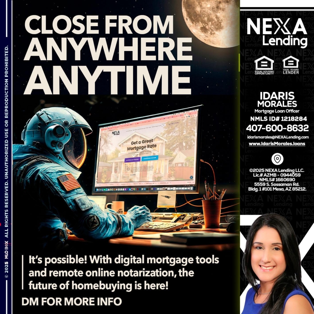 close from - Idaris Morales -Mortgage Loan OfficerHi, my name is Idaris Morales. I’m a Loan Officer with NEXA Lending LLC., offering personalized mortgage solutions, fast customized quotes, great rates and service with integrity.