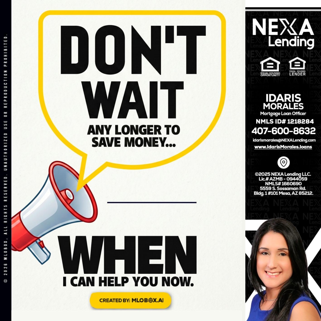 Hi, my name is Idaris Morales. I’m a Loan Officer with NEXA Lending LLC., offering personalized mortgage solutions, fast customized quotes, great rates and service with integrity.