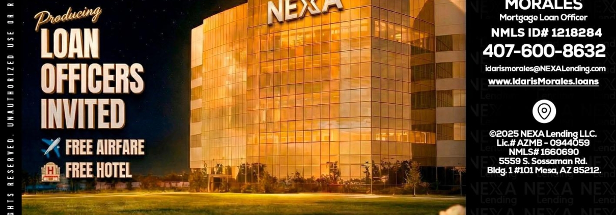 Hi, my name is Idaris Morales. I’m a Loan Officer with NEXA Lending LLC., offering personalized mortgage solutions, fast customized quotes, great rates and service with integrity.