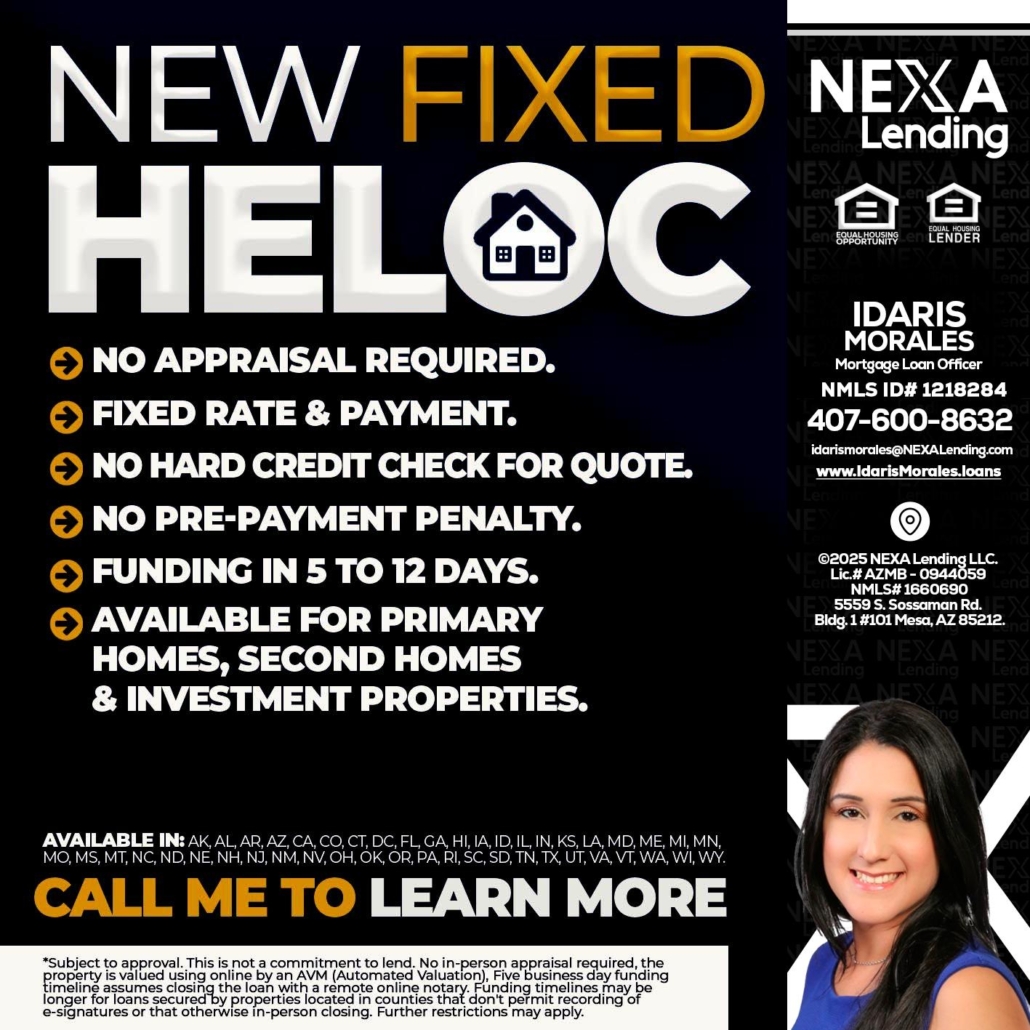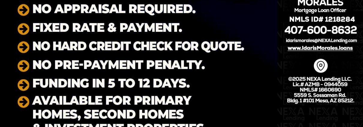 Hi, my name is Idaris Morales. I’m a Loan Officer with NEXA Lending LLC., offering personalized mortgage solutions, fast customized quotes, great rates and service with integrity.