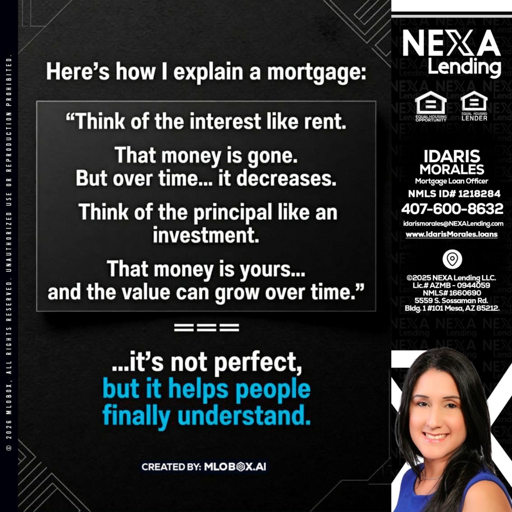 Hi, my name is Idaris Morales. I’m a Loan Officer with NEXA Lending LLC., offering personalized mortgage solutions, fast customized quotes, great rates and service with integrity.