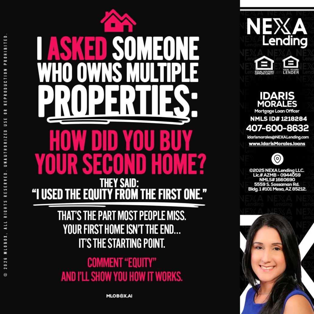 Hi, my name is Idaris Morales. I’m a Loan Officer with NEXA Lending LLC., offering personalized mortgage solutions, fast customized quotes, great rates and service with integrity.