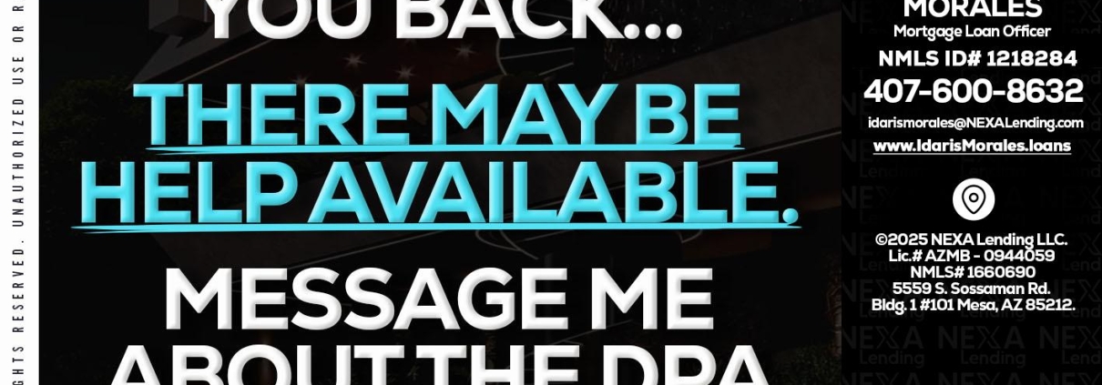 Hi, my name is Idaris Morales. I’m a Loan Officer with NEXA Lending LLC., offering personalized mortgage solutions, fast customized quotes, great rates and service with integrity.