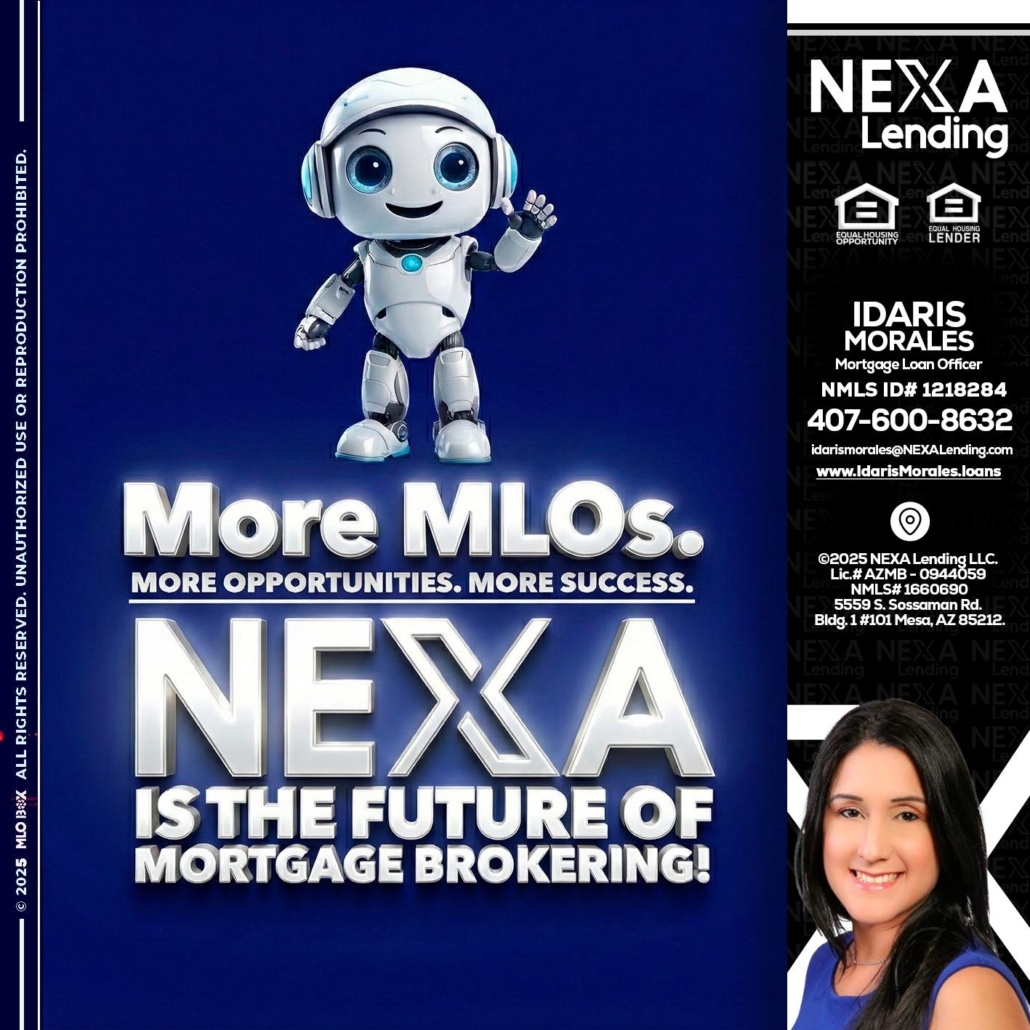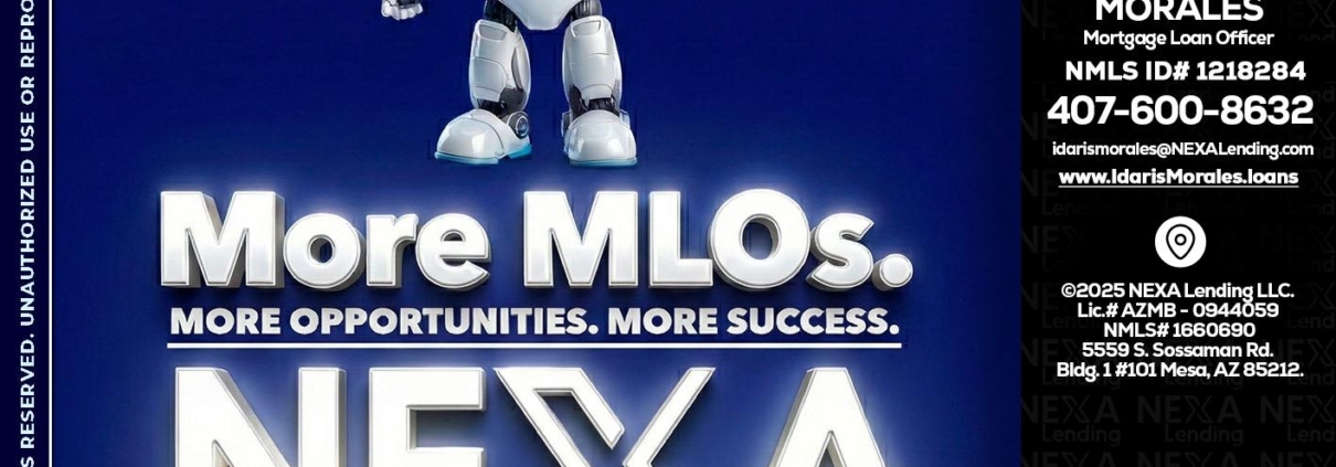 Hi, my name is Idaris Morales. I’m a Loan Officer with NEXA Lending LLC., offering personalized mortgage solutions, fast customized quotes, great rates and service with integrity.
