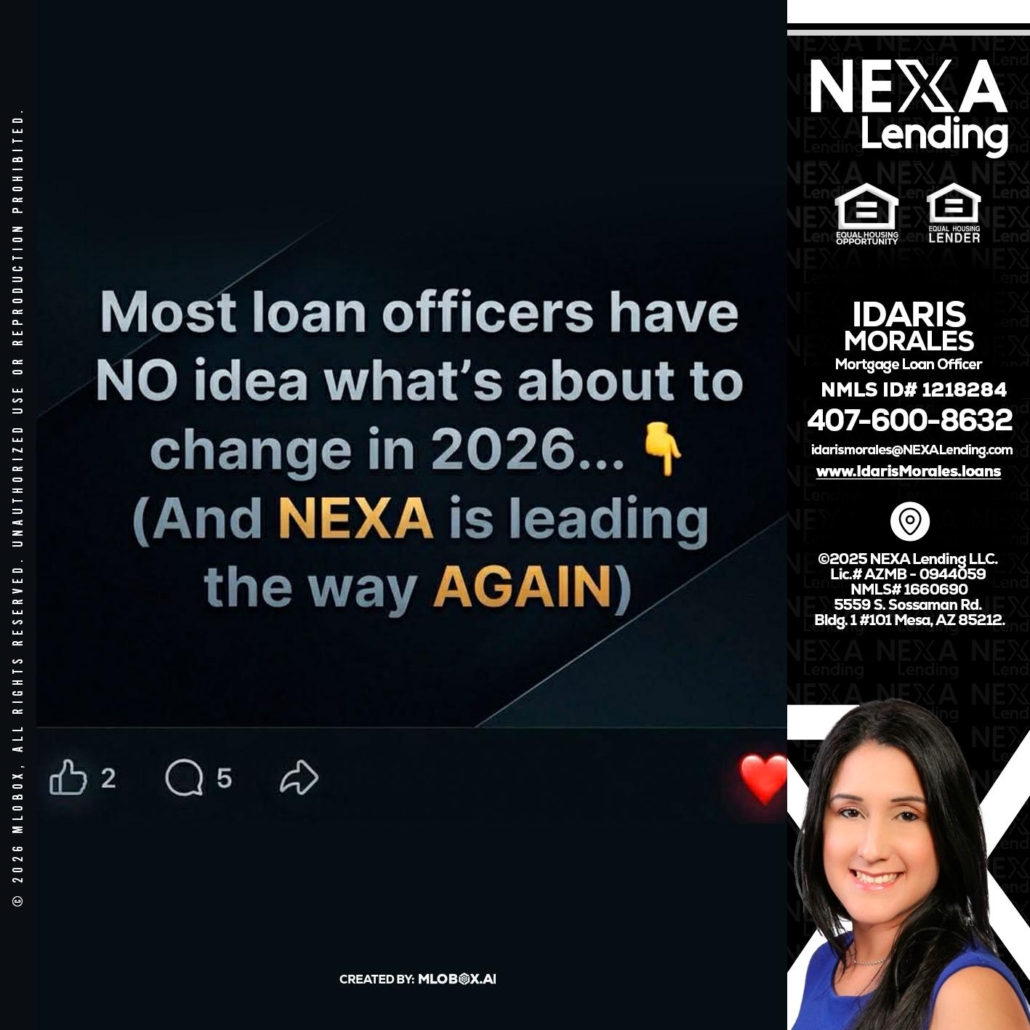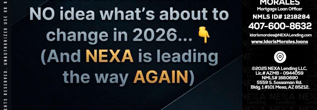 Hi, my name is Idaris Morales. I’m a Loan Officer with NEXA Lending LLC., offering personalized mortgage solutions, fast customized quotes, great rates and service with integrity.