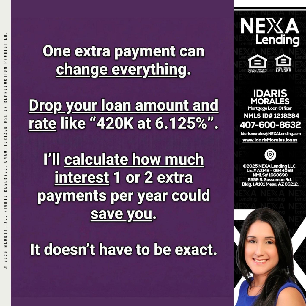 Hi, my name is Idaris Morales. I’m a Loan Officer with NEXA Lending LLC., offering personalized mortgage solutions, fast customized quotes, great rates and service with integrity.
