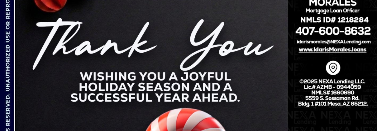 Hi, my name is Idaris Morales. I’m a Loan Officer with NEXA Lending LLC., offering personalized mortgage solutions, fast customized quotes, great rates and service with integrity.