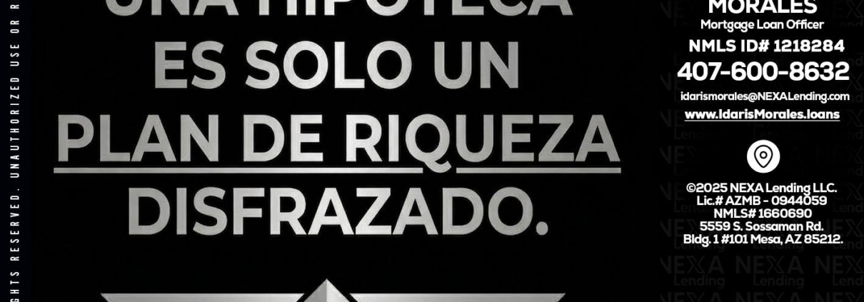 Hi, my name is Idaris Morales. I’m a Loan Officer with NEXA Lending LLC., offering personalized mortgage solutions, fast customized quotes, great rates and service with integrity.